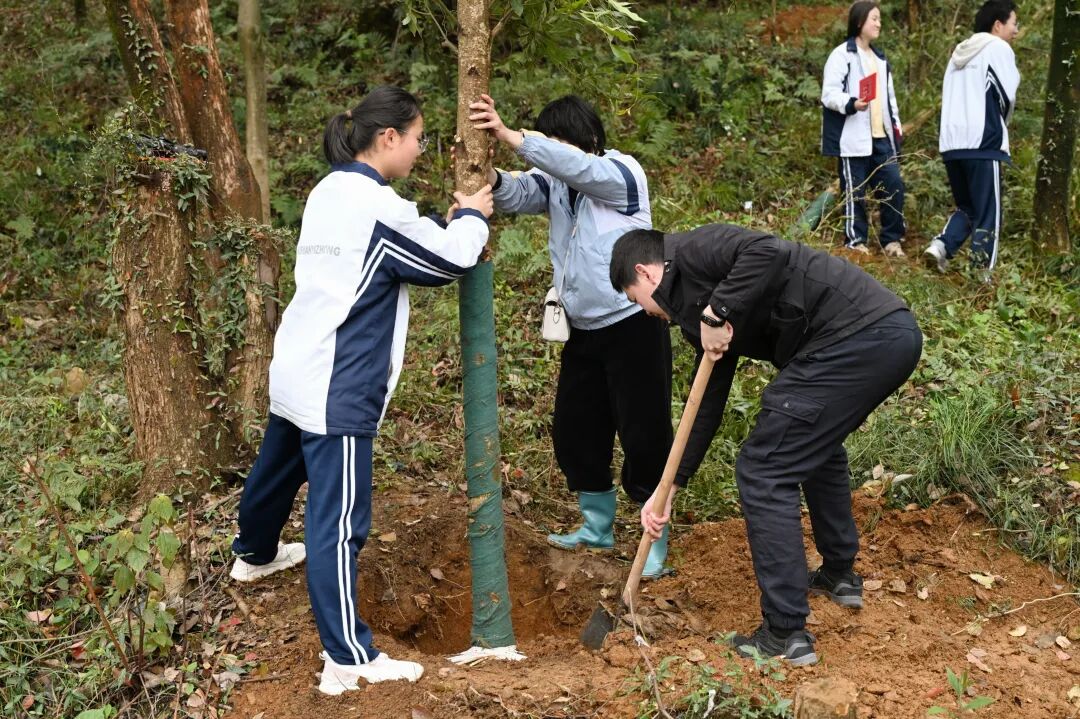 自去年3月玉山一中与县林业局共同发起“博士学子林”认种认养活动以来,双方积极开展共植共护合作:认种学子签订《成长守护承诺书》,利用节假日参与树木修剪、施肥等实践;玉山县林业局对学生认种认养的树木进行定期养护,见证树木长势与学子成长。