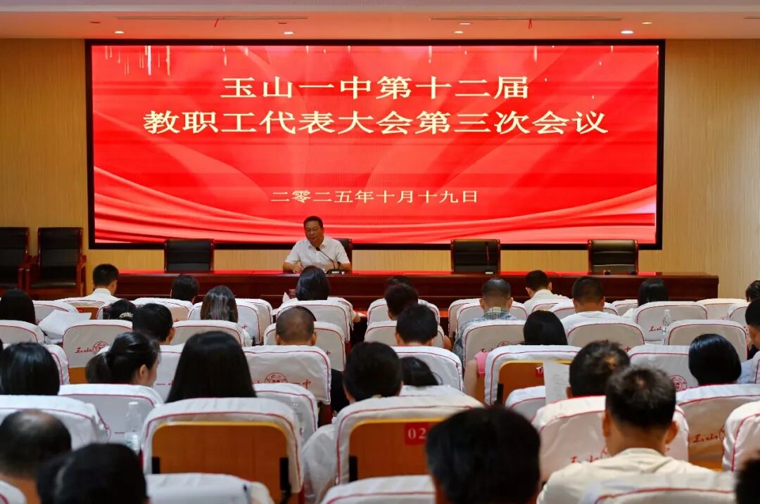 10月19日,江西省玉山一中第十二届教职工代表大会第三次会议胜利召开。玉山一中党委书记陈朝晖等校领导出席。大会正式代表、列席代表83人参加会议。玉山一中工会副主席陈慧颖主持开(闭)幕会。